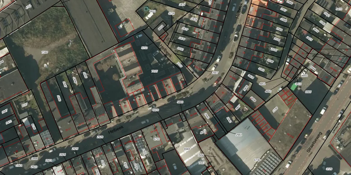 Helbeek 47 is gelegen op kadastraal perceel VLO00A7015. Deze kadastrale aanduiding is uniek en wordt gebruikt door het Kadaster om eigendomsrechten en andere zakelijke rechten vast te leggen. Het perceel maakt onderdeel uit van de kadastrale gemeente Venlo.