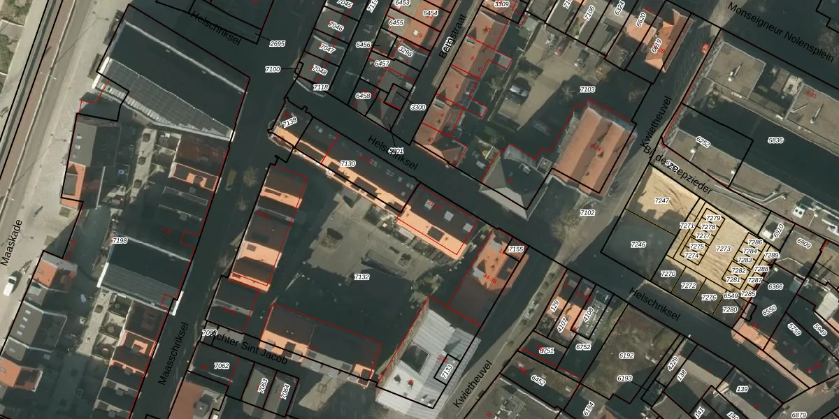 Helschriksel 25 is gelegen op kadastraal perceel VLO00I7132. Deze kadastrale aanduiding is uniek en wordt gebruikt door het Kadaster om eigendomsrechten en andere zakelijke rechten vast te leggen. Het perceel maakt onderdeel uit van de kadastrale gemeente Venlo.