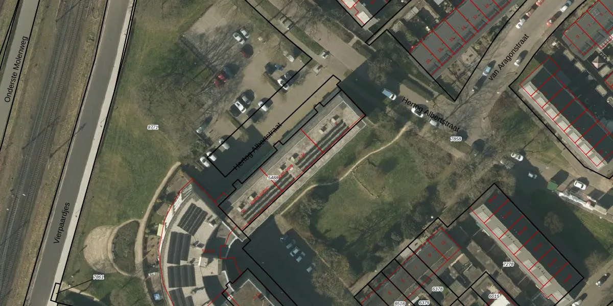 Hertog Albertstraat 34 is gelegen op kadastraal perceel VLO00H5488. Deze kadastrale aanduiding is uniek en wordt gebruikt door het Kadaster om eigendomsrechten en andere zakelijke rechten vast te leggen. Het perceel maakt onderdeel uit van de kadastrale gemeente Venlo.