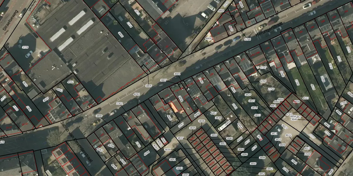 Herungerstraat 156 is gelegen op kadastraal perceel VLO00C3808. Deze kadastrale aanduiding is uniek en wordt gebruikt door het Kadaster om eigendomsrechten en andere zakelijke rechten vast te leggen. Het perceel maakt onderdeel uit van de kadastrale gemeente Venlo.