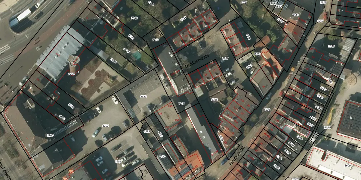 Heutzstraat 23-G is gelegen op kadastraal perceel VLO00D8114. Deze kadastrale aanduiding is uniek en wordt gebruikt door het Kadaster om eigendomsrechten en andere zakelijke rechten vast te leggen. Het perceel maakt onderdeel uit van de kadastrale gemeente Venlo.