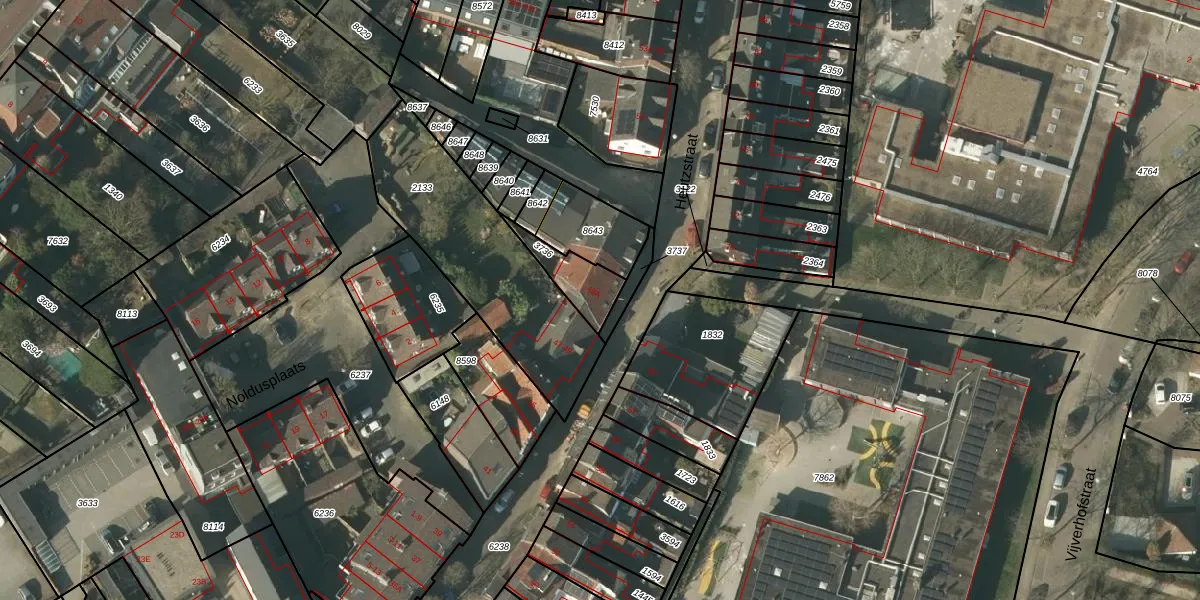 Gebruik de zoekbalk of klik op een perceel voor informatie over de adressen binnen dit perceel.