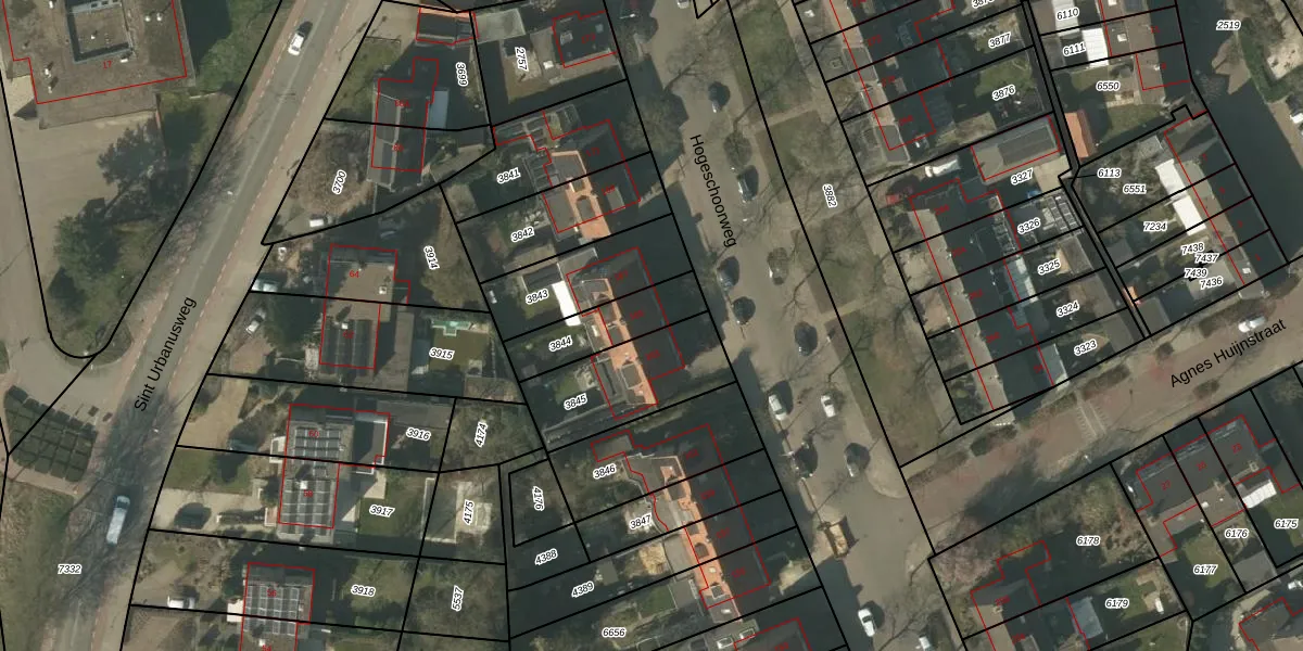 Hogeschoorweg 165 is gelegen op kadastraal perceel VLO00A3844. Deze kadastrale aanduiding is uniek en wordt gebruikt door het Kadaster om eigendomsrechten en andere zakelijke rechten vast te leggen. Het perceel maakt onderdeel uit van de kadastrale gemeente Venlo.