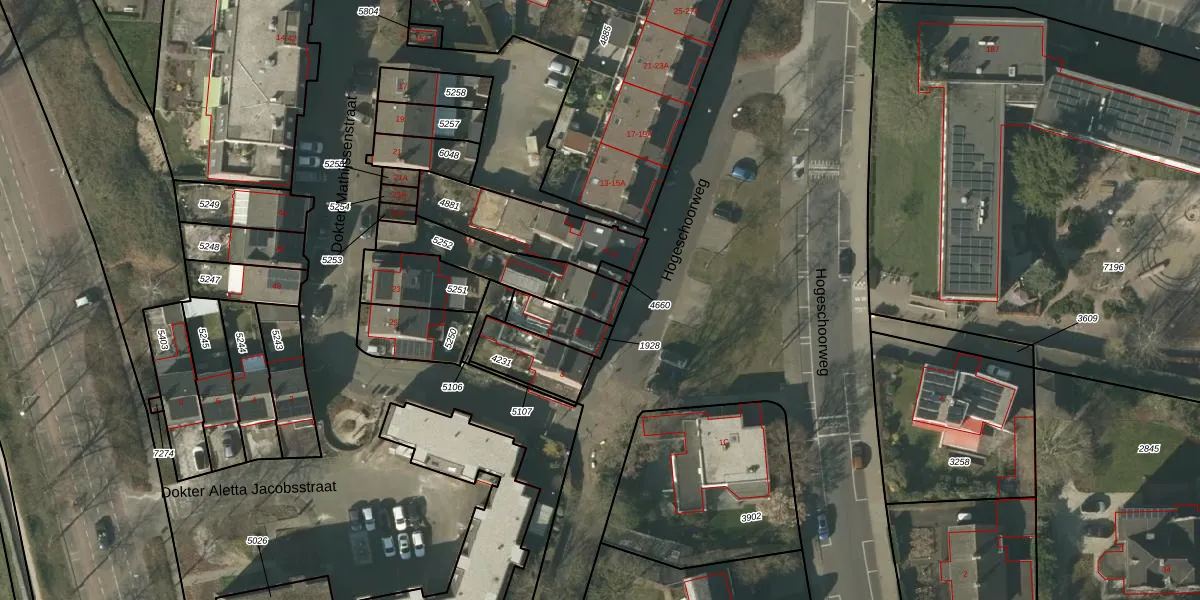 Hogeschoorweg 5 is gelegen op kadastraal perceel VLO00A5252. Deze kadastrale aanduiding is uniek en wordt gebruikt door het Kadaster om eigendomsrechten en andere zakelijke rechten vast te leggen. Het perceel maakt onderdeel uit van de kadastrale gemeente Venlo.