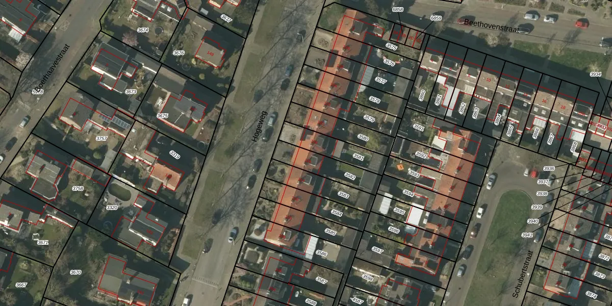 Hogeweg 116 is gelegen op kadastraal perceel VLO00A3582. Deze kadastrale aanduiding is uniek en wordt gebruikt door het Kadaster om eigendomsrechten en andere zakelijke rechten vast te leggen. Het perceel maakt onderdeel uit van de kadastrale gemeente Venlo.