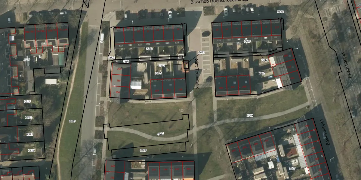 Hogeweg 250 is gelegen op kadastraal perceel VLO00A7775. Deze kadastrale aanduiding is uniek en wordt gebruikt door het Kadaster om eigendomsrechten en andere zakelijke rechten vast te leggen. Het perceel maakt onderdeel uit van de kadastrale gemeente Venlo.
