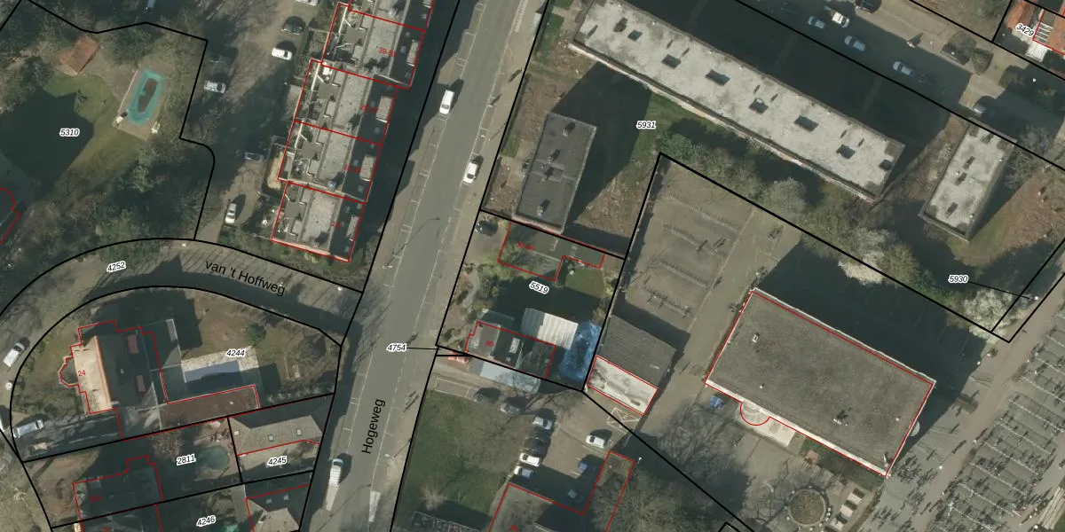 Hogeweg 36 is gelegen op kadastraal perceel VLO00A5519. Deze kadastrale aanduiding is uniek en wordt gebruikt door het Kadaster om eigendomsrechten en andere zakelijke rechten vast te leggen. Het perceel maakt onderdeel uit van de kadastrale gemeente Venlo.