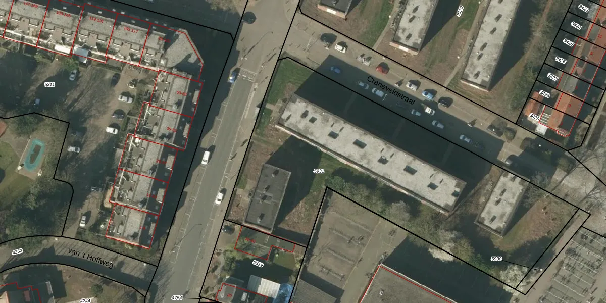 Hogeweg 54 is gelegen op kadastraal perceel VLO00A5931. Deze kadastrale aanduiding is uniek en wordt gebruikt door het Kadaster om eigendomsrechten en andere zakelijke rechten vast te leggen. Het perceel maakt onderdeel uit van de kadastrale gemeente Venlo.