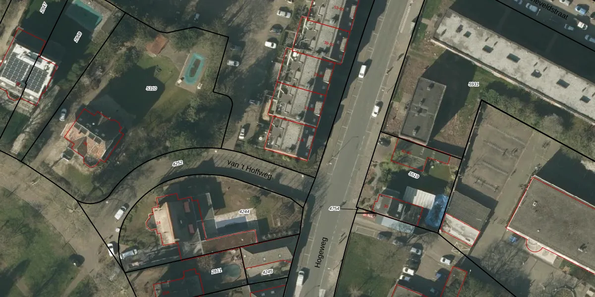 Hogeweg 9 is gelegen op kadastraal perceel VLO00A5311. Deze kadastrale aanduiding is uniek en wordt gebruikt door het Kadaster om eigendomsrechten en andere zakelijke rechten vast te leggen. Het perceel maakt onderdeel uit van de kadastrale gemeente Venlo.