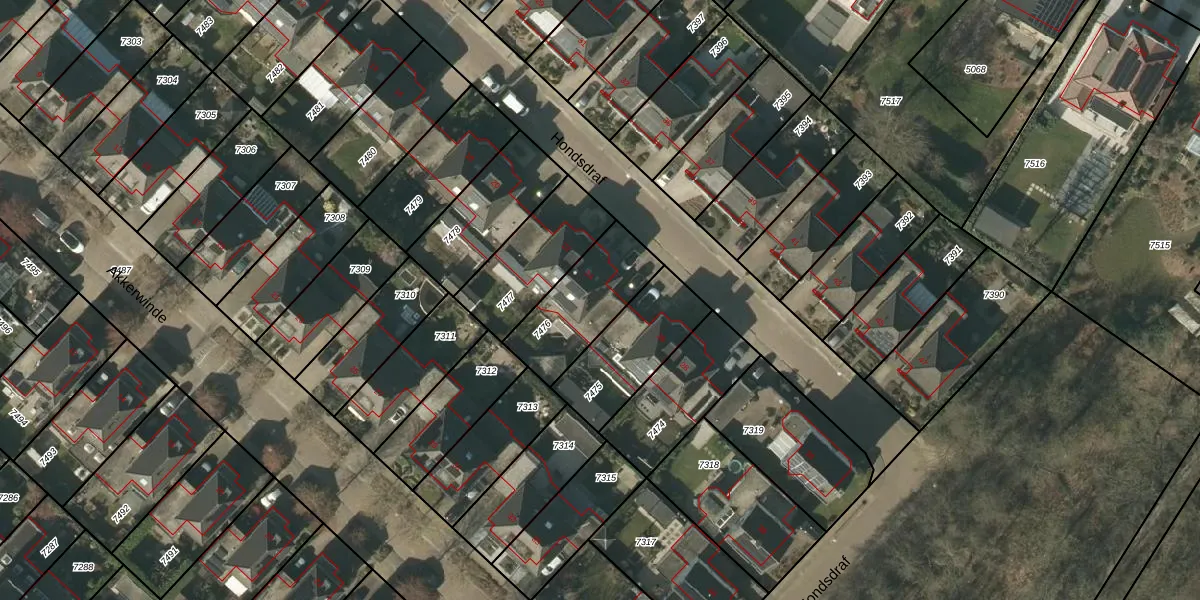Het perceel waarop Hondsdraf 24 staat heeft een oppervlakte van 307 m². Dit is een groot perceel. De perceeloppervlakte wordt geregistreerd door het Kadaster. Gedetailleerde informatie over de maten van dit perceel kunt u vinden in het rapport Kadastrale kaart met maatvoering van Hondsdraf 24.