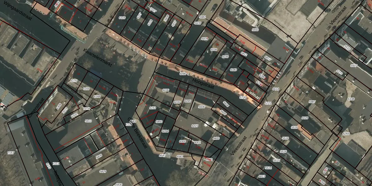 Het perceel waarop Hoogstraat 11-A staat heeft een oppervlakte van 79 m². Dit is een klein perceel. De perceeloppervlakte wordt geregistreerd door het Kadaster. Gedetailleerde informatie over de maten van dit perceel kunt u vinden in het rapport Kadastrale kaart met maatvoering van Hoogstraat 11-A.