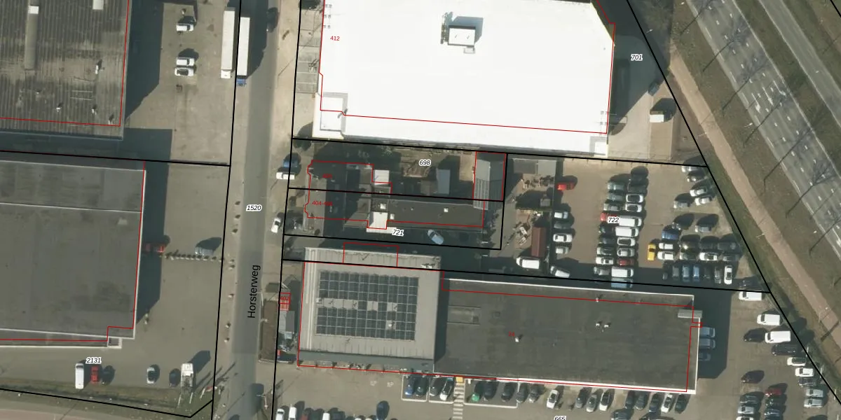 Horsterweg 404 is gelegen op kadastraal perceel VLO00O721. Deze kadastrale aanduiding is uniek en wordt gebruikt door het Kadaster om eigendomsrechten en andere zakelijke rechten vast te leggen. Het perceel maakt onderdeel uit van de kadastrale gemeente Venlo.