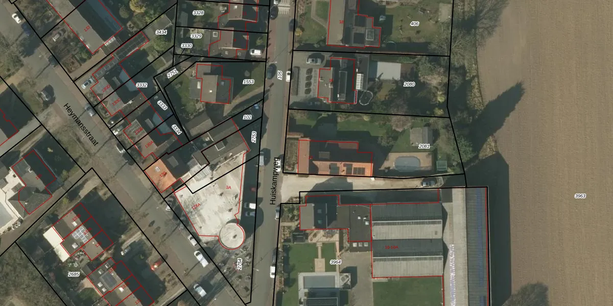Huiskampweg 12 is gelegen op kadastraal perceel VLO00N2081. Deze kadastrale aanduiding is uniek en wordt gebruikt door het Kadaster om eigendomsrechten en andere zakelijke rechten vast te leggen. Het perceel maakt onderdeel uit van de kadastrale gemeente Venlo.