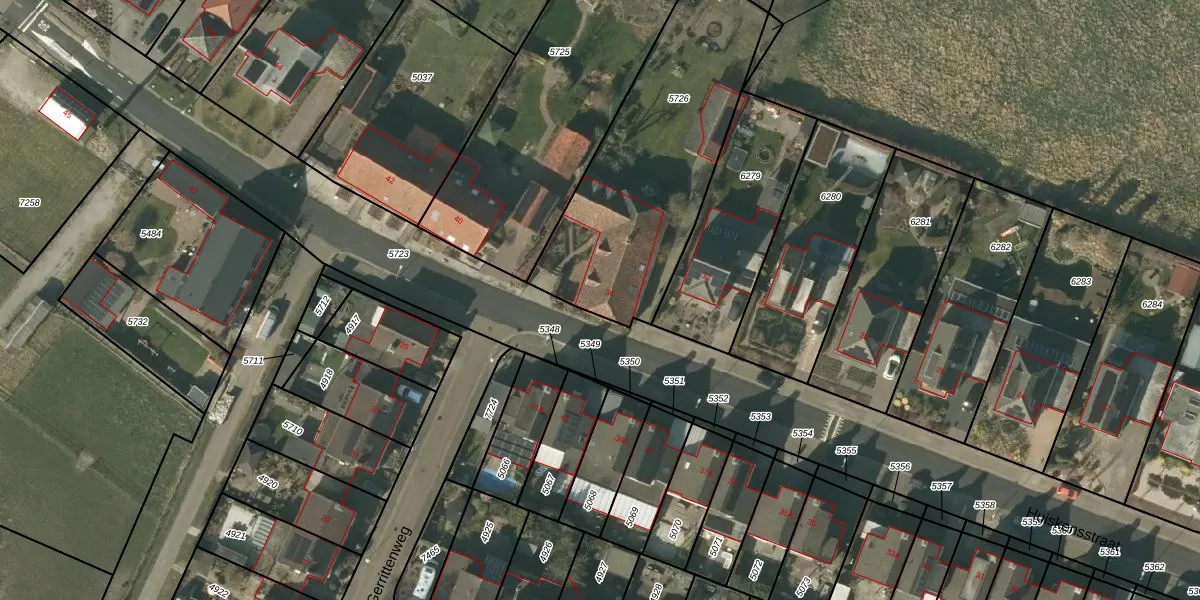 Het perceel waarop Huiskensstraat 36 staat heeft een oppervlakte van 1110 m². Dit is een zeer groot perceel. De perceeloppervlakte wordt geregistreerd door het Kadaster. Gedetailleerde informatie over de maten van dit perceel kunt u vinden in het rapport Kadastrale kaart met maatvoering van Huiskensstraat 36.