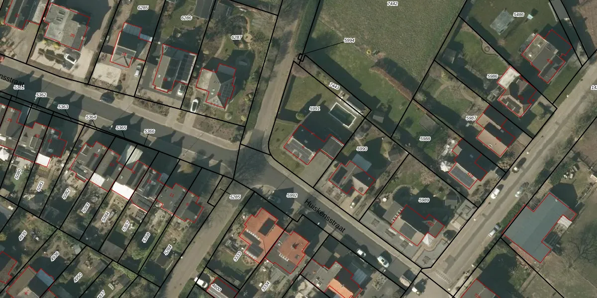 Huiskensstraat 6 is gelegen op kadastraal perceel VLO00A5991. Deze kadastrale aanduiding is uniek en wordt gebruikt door het Kadaster om eigendomsrechten en andere zakelijke rechten vast te leggen. Het perceel maakt onderdeel uit van de kadastrale gemeente Venlo.