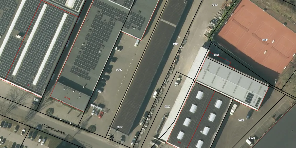 Het perceel waarop Huiskensstraat 66-F staat heeft een oppervlakte van 2694 m². Dit is een zeer groot perceel. De perceeloppervlakte wordt geregistreerd door het Kadaster. Gedetailleerde informatie over de maten van dit perceel kunt u vinden in het rapport Kadastrale kaart met maatvoering van Huiskensstraat 66-F.