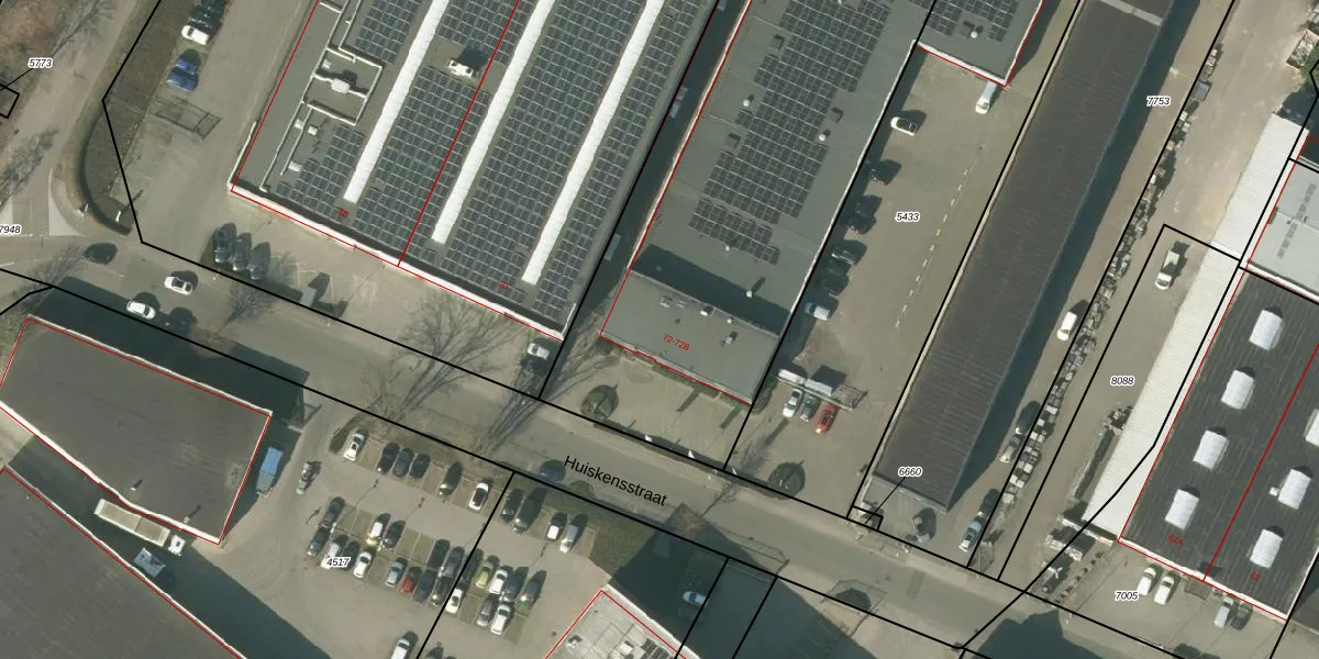 Huiskensstraat 72 is gelegen op kadastraal perceel VLO00A5272. Deze kadastrale aanduiding is uniek en wordt gebruikt door het Kadaster om eigendomsrechten en andere zakelijke rechten vast te leggen. Het perceel maakt onderdeel uit van de kadastrale gemeente Venlo.