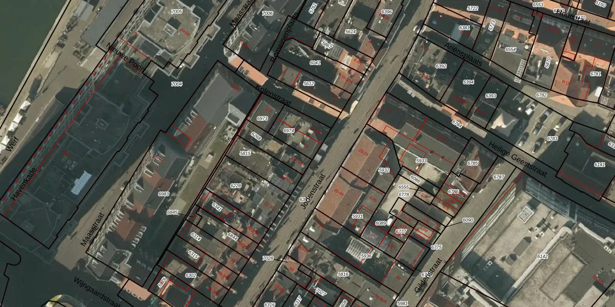 Jodenstraat 16 is gelegen op kadastraal perceel VLO00I6974. Deze kadastrale aanduiding is uniek en wordt gebruikt door het Kadaster om eigendomsrechten en andere zakelijke rechten vast te leggen. Het perceel maakt onderdeel uit van de kadastrale gemeente Venlo.