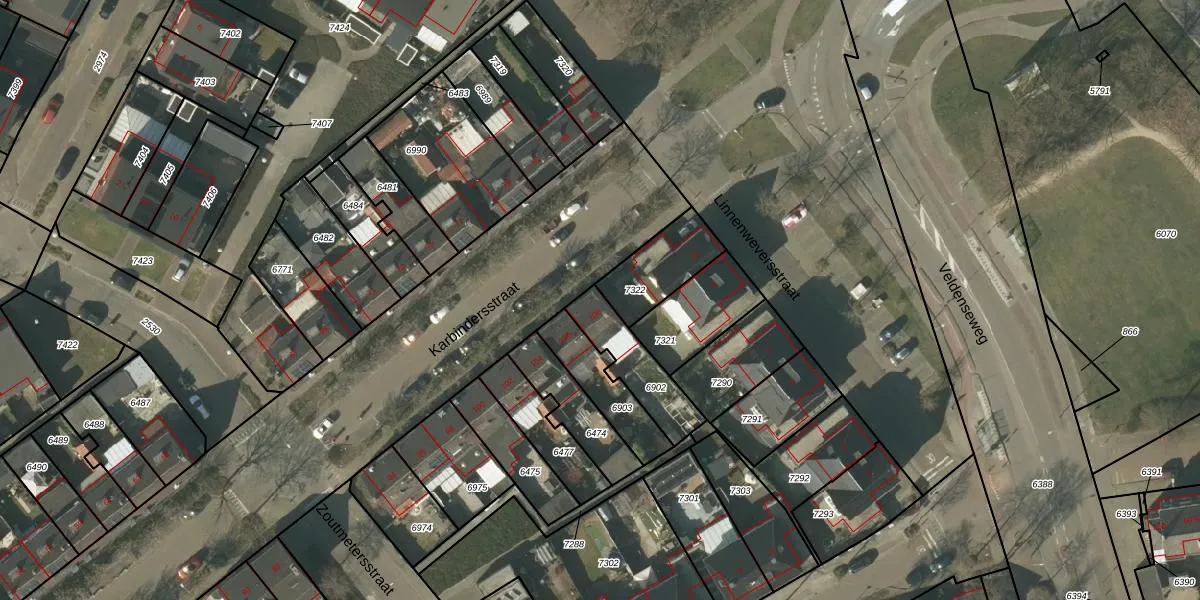 Karbindersstraat 108 is gelegen op kadastraal perceel VLO00A6902. Deze kadastrale aanduiding is uniek en wordt gebruikt door het Kadaster om eigendomsrechten en andere zakelijke rechten vast te leggen. Het perceel maakt onderdeel uit van de kadastrale gemeente Venlo.