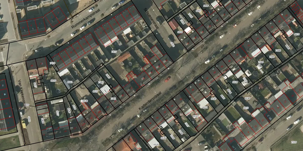 Karbindersstraat 31 is gelegen op kadastraal perceel VLO00A7477. Deze kadastrale aanduiding is uniek en wordt gebruikt door het Kadaster om eigendomsrechten en andere zakelijke rechten vast te leggen. Het perceel maakt onderdeel uit van de kadastrale gemeente Venlo.