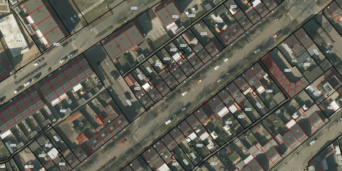 Gebruik de zoekbalk of klik op een perceel voor informatie over de adressen binnen dit perceel.