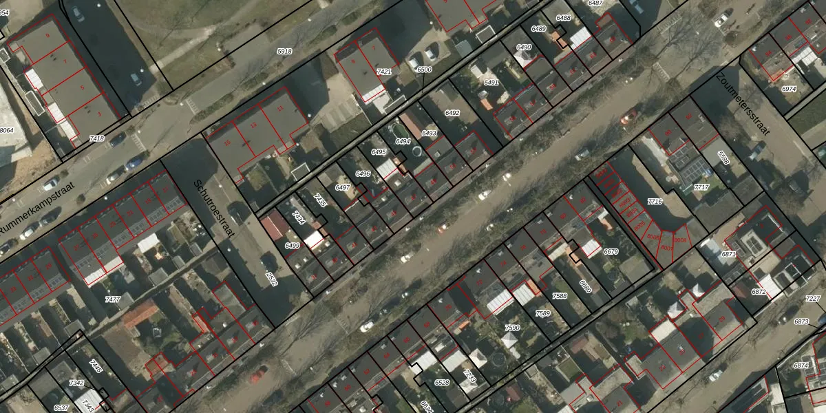 Gebruik de zoekbalk of klik op een perceel voor informatie over de adressen binnen dit perceel.