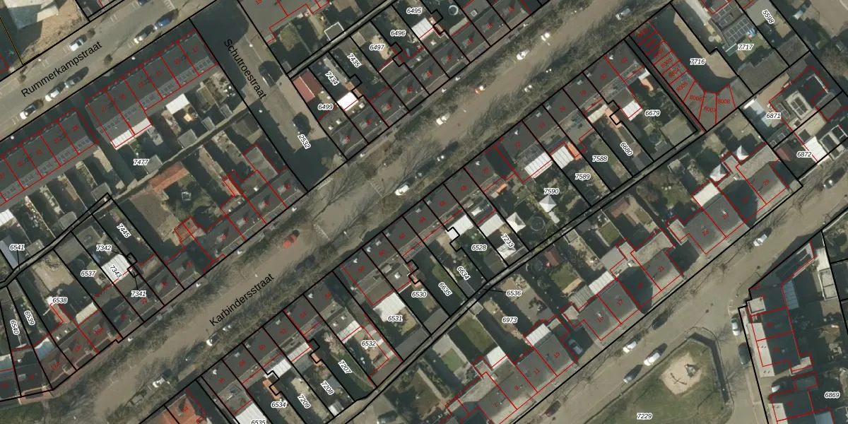 Karbindersstraat 64 is gelegen op kadastraal perceel VLO00A6634. Deze kadastrale aanduiding is uniek en wordt gebruikt door het Kadaster om eigendomsrechten en andere zakelijke rechten vast te leggen. Het perceel maakt onderdeel uit van de kadastrale gemeente Venlo.