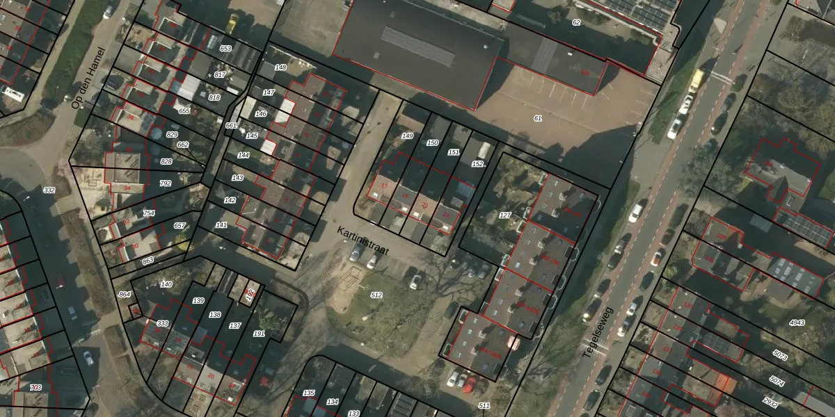Kartinistraat 21 is gelegen op kadastraal perceel VLO00T151. Deze kadastrale aanduiding is uniek en wordt gebruikt door het Kadaster om eigendomsrechten en andere zakelijke rechten vast te leggen. Het perceel maakt onderdeel uit van de kadastrale gemeente Venlo.