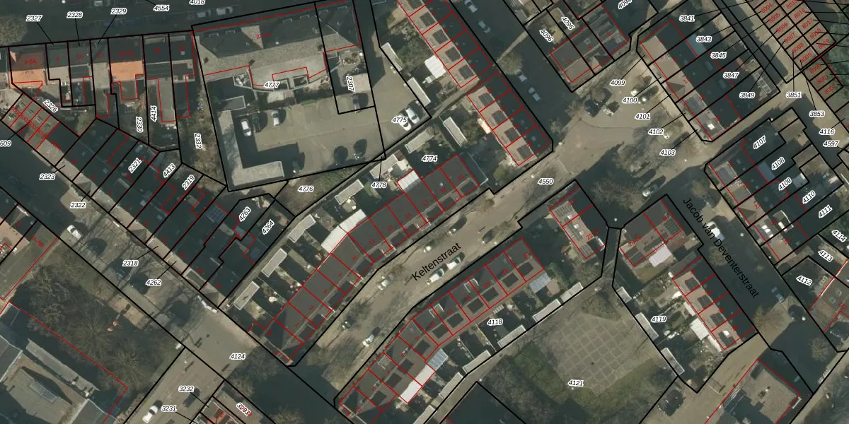 Keltenstraat 17 is gelegen op kadastraal perceel VLO00C4774. Deze kadastrale aanduiding is uniek en wordt gebruikt door het Kadaster om eigendomsrechten en andere zakelijke rechten vast te leggen. Het perceel maakt onderdeel uit van de kadastrale gemeente Venlo.