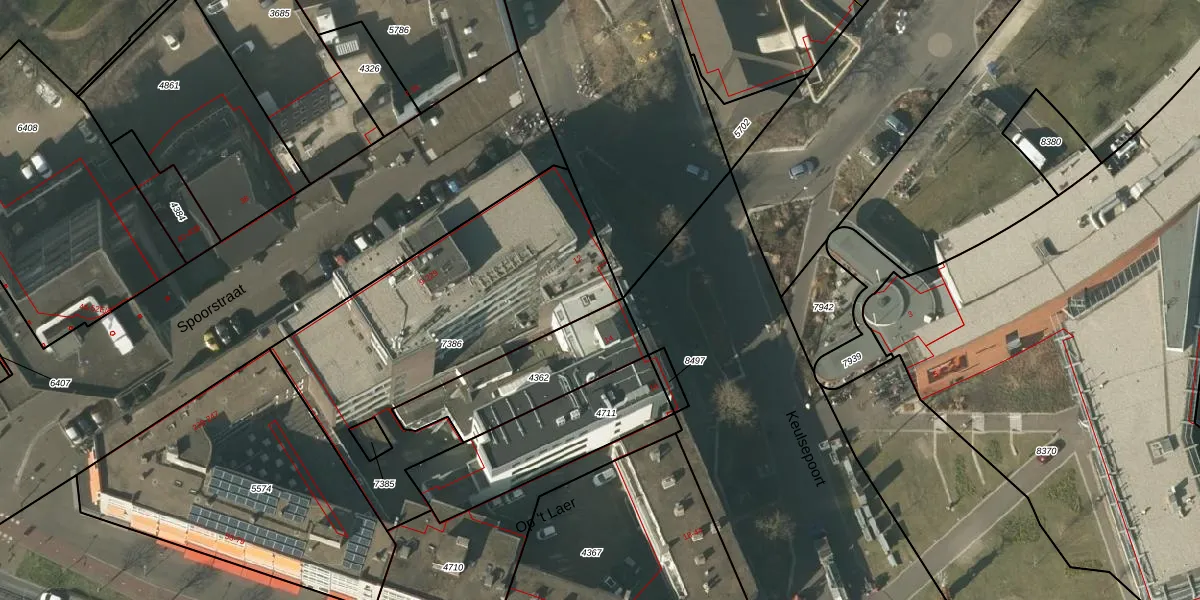 Het perceel waarop Keulsepoort 12 staat heeft een oppervlakte van 1370 m². Dit is een zeer groot perceel. De perceeloppervlakte wordt geregistreerd door het Kadaster. Gedetailleerde informatie over de maten van dit perceel kunt u vinden in het rapport Kadastrale kaart met maatvoering van Keulsepoort 12.