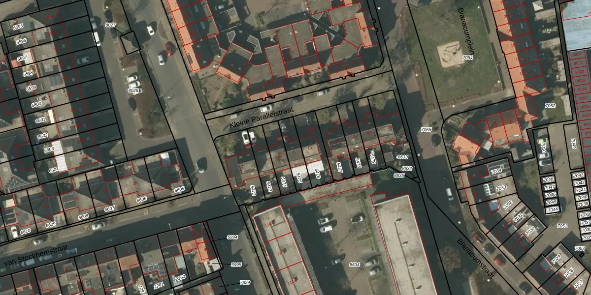 Gebruik de zoekbalk of klik op een perceel voor informatie over de adressen binnen dit perceel.