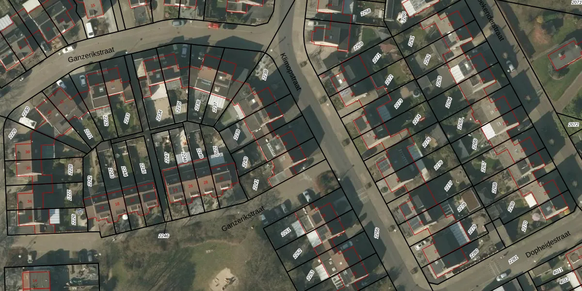 Klimopstraat 33 is gelegen op kadastraal perceel VLO00N2240. Deze kadastrale aanduiding is uniek en wordt gebruikt door het Kadaster om eigendomsrechten en andere zakelijke rechten vast te leggen. Het perceel maakt onderdeel uit van de kadastrale gemeente Venlo.