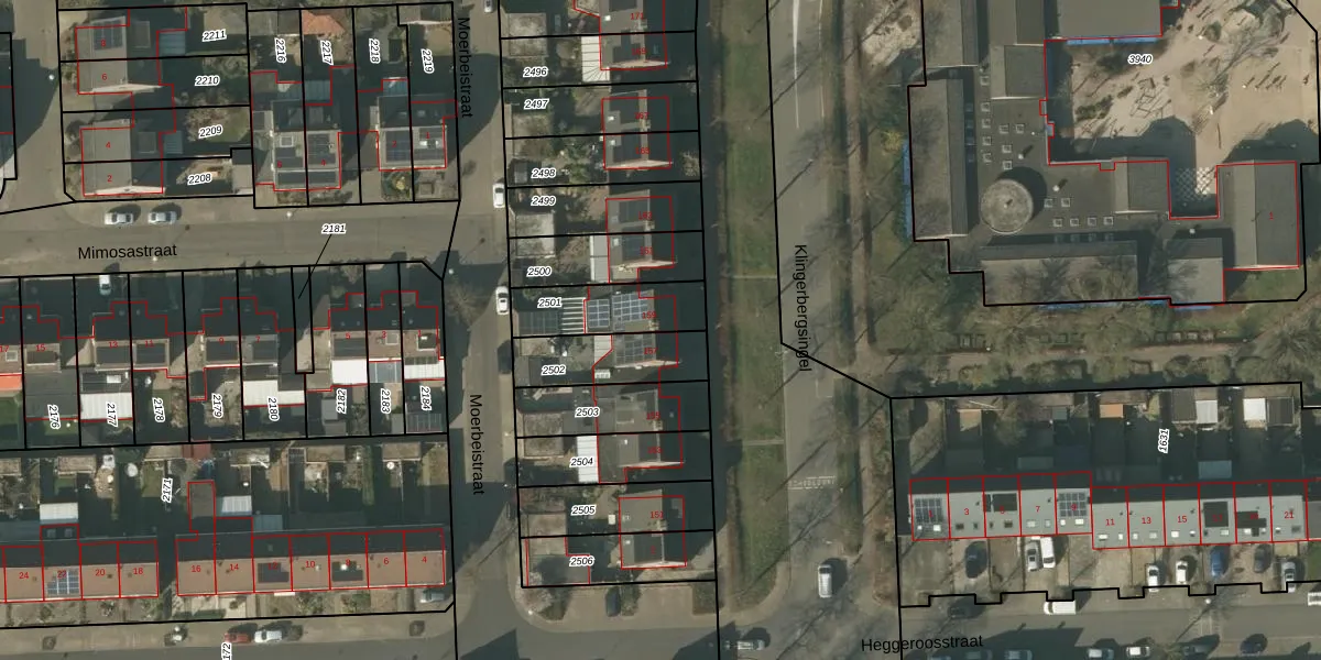 Gebruik de zoekbalk of klik op een perceel voor informatie over de adressen binnen dit perceel.