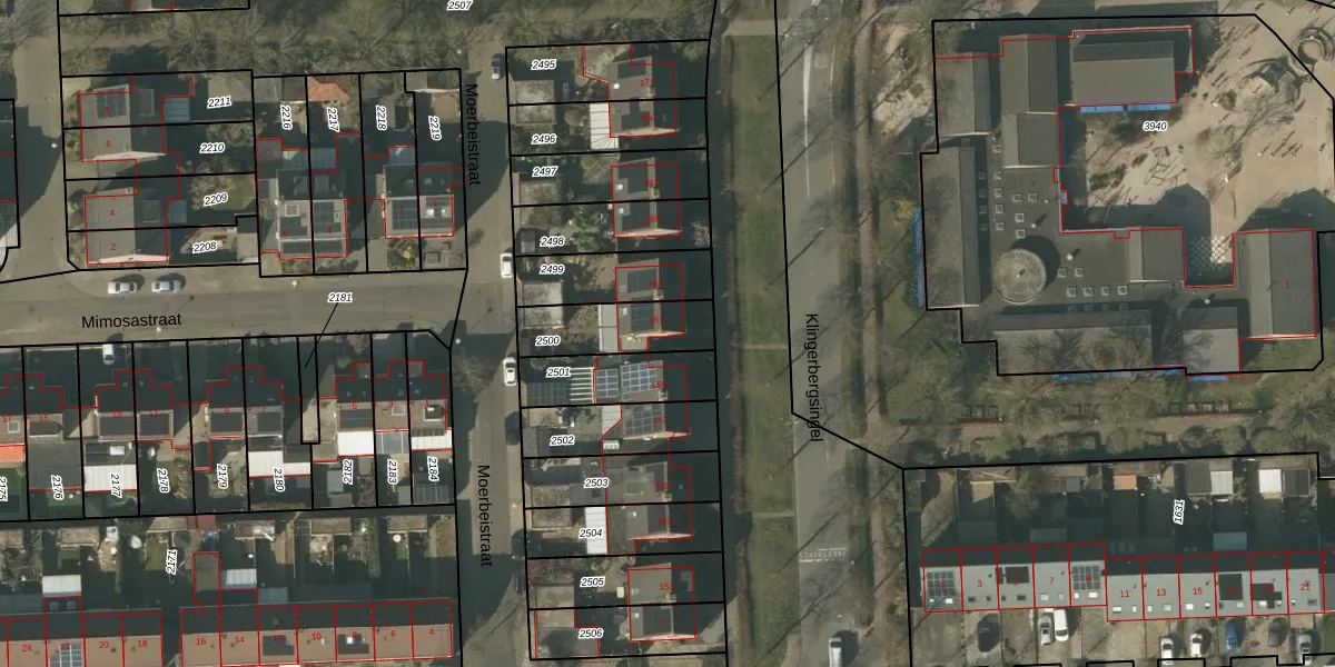 Gebruik de zoekbalk of klik op een perceel voor informatie over de adressen binnen dit perceel.