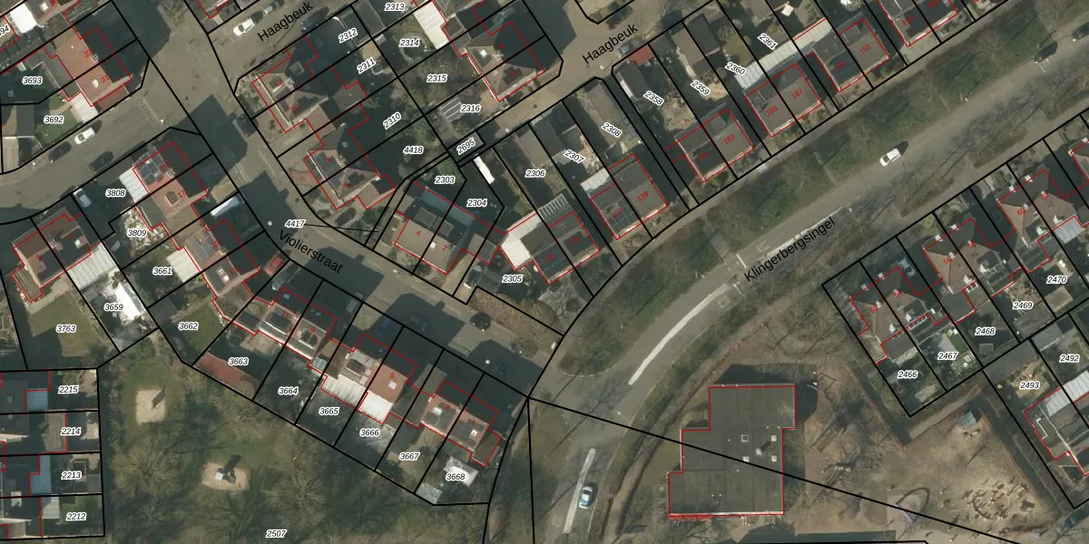 Gebruik de zoekbalk of klik op een perceel voor informatie over de adressen binnen dit perceel.