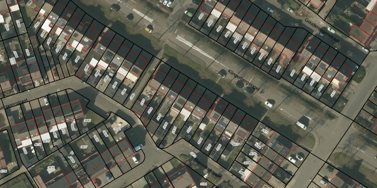 Gebruik de zoekbalk of klik op een perceel voor informatie over de adressen binnen dit perceel.