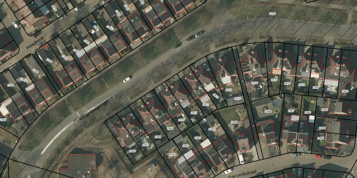 Gebruik de zoekbalk of klik op een perceel voor informatie over de adressen binnen dit perceel.