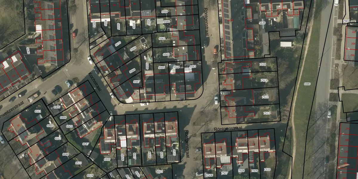 Gebruik de zoekbalk of klik op een perceel voor informatie over de adressen binnen dit perceel.