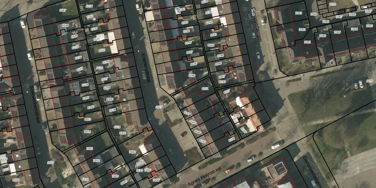 Kramersstraat 12 is gelegen op kadastraal perceel VLO00A6151. Deze kadastrale aanduiding is uniek en wordt gebruikt door het Kadaster om eigendomsrechten en andere zakelijke rechten vast te leggen. Het perceel maakt onderdeel uit van de kadastrale gemeente Venlo.