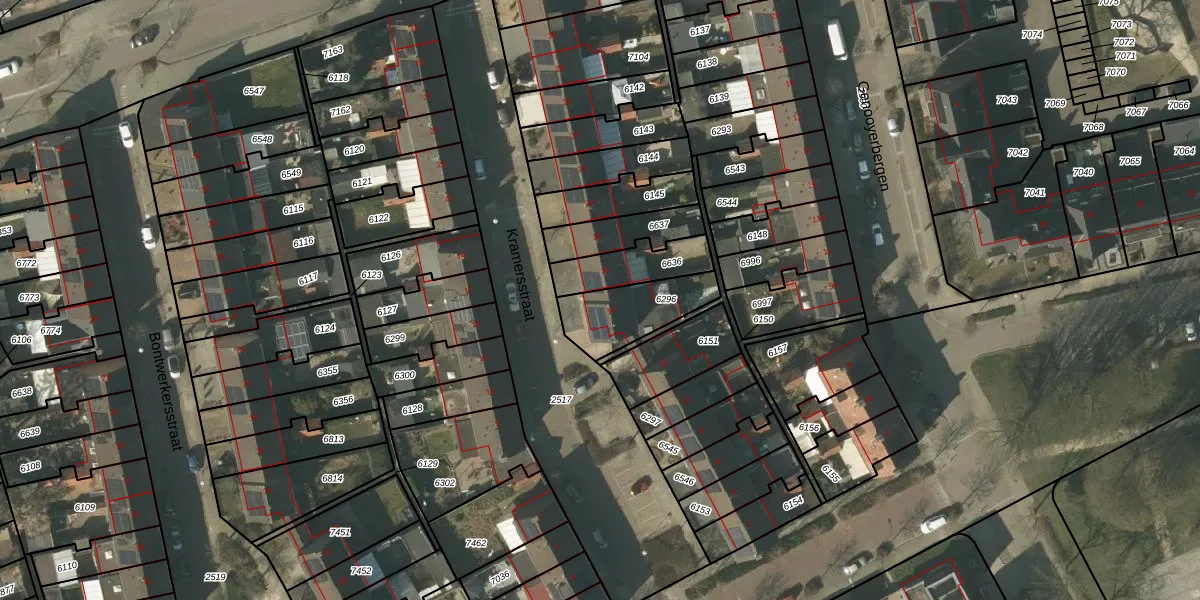 Kramersstraat 14 is gelegen op kadastraal perceel VLO00A6296. Deze kadastrale aanduiding is uniek en wordt gebruikt door het Kadaster om eigendomsrechten en andere zakelijke rechten vast te leggen. Het perceel maakt onderdeel uit van de kadastrale gemeente Venlo.