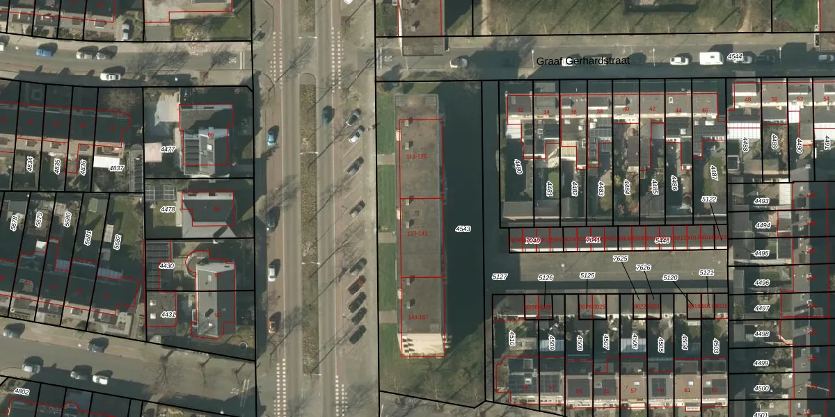 Het perceel waarop het adres ligt is VLO00-D-4543. De afkorting 'VLO00' staat voor kadastrale gemeente Venlo. Het perceel is kleiner dan gemiddeld in Venlo. Het perceel is 1915 m² groot, terwijl het gemiddelde ligt op 1969,62 m². Het grootste perceel in de kadastrale gemeente is 82,6 ha. Het kleinste perceel heeft een oppervlakte van 0 m². Op het perceel liggen in totaal 24 adressen. De huidige grenzen van het perceel zijn digitaal in de Basisregistratie Kadaster (BRK) geregistreerd op 06-04-2006.