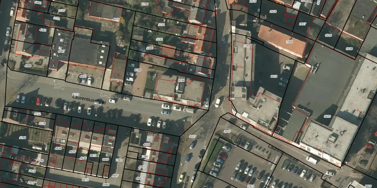 Laurentiusstraat 68 is gelegen op kadastraal perceel VLO00M8199. Deze kadastrale aanduiding is uniek en wordt gebruikt door het Kadaster om eigendomsrechten en andere zakelijke rechten vast te leggen. Het perceel maakt onderdeel uit van de kadastrale gemeente Venlo.