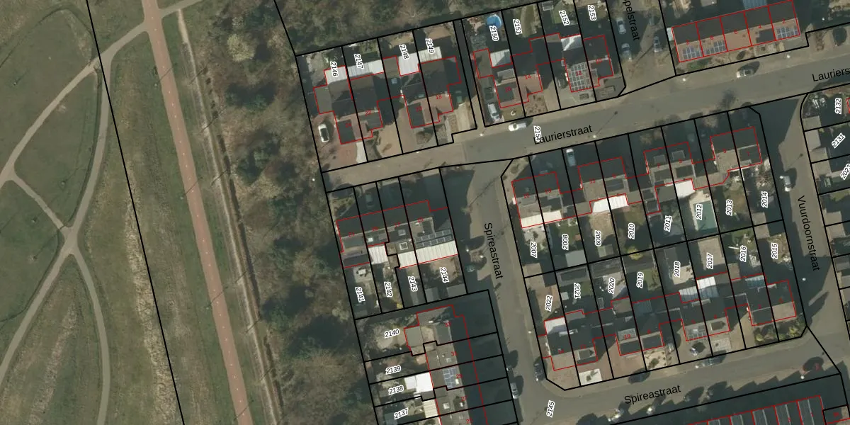 Het perceel waarop Laurierstraat 15 staat heeft een oppervlakte van 302 m². Dit is een groot perceel. De perceeloppervlakte wordt geregistreerd door het Kadaster. Gedetailleerde informatie over de maten van dit perceel kunt u vinden in het rapport Kadastrale kaart met maatvoering van Laurierstraat 15.