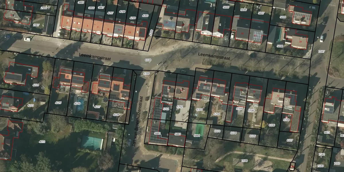 Leemkampstraat 10 is gelegen op kadastraal perceel VLO00D5701. Deze kadastrale aanduiding is uniek en wordt gebruikt door het Kadaster om eigendomsrechten en andere zakelijke rechten vast te leggen. Het perceel maakt onderdeel uit van de kadastrale gemeente Venlo.