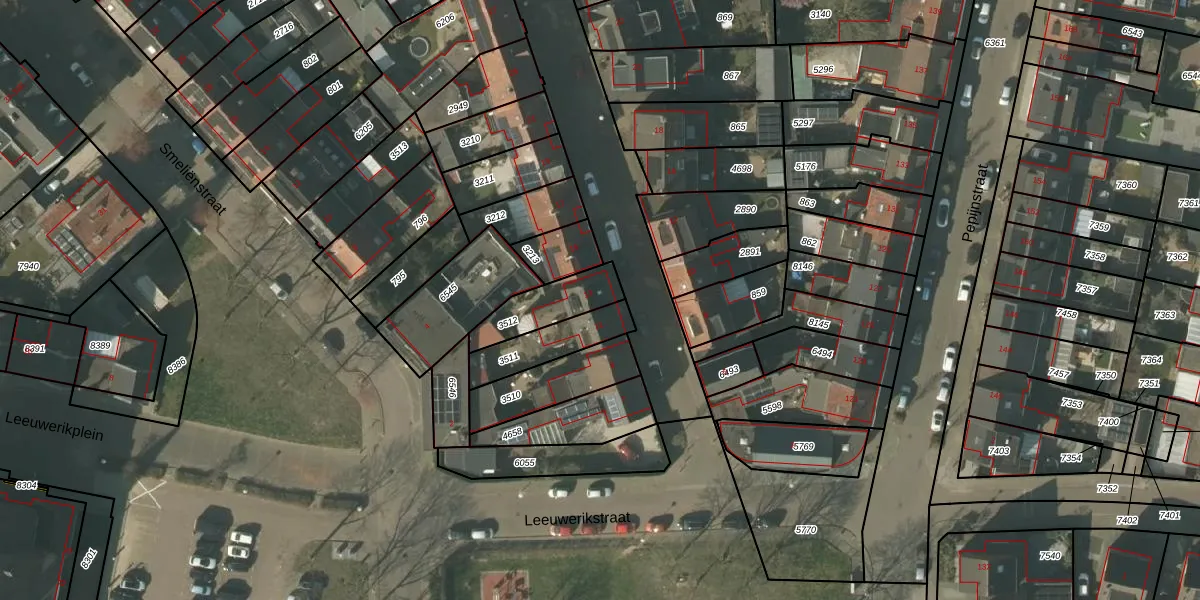 Gebruik de zoekbalk of klik op een perceel voor informatie over de adressen binnen dit perceel.