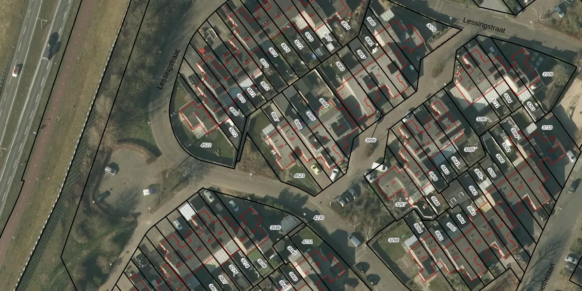 Lessingstraat 55 is gelegen op kadastraal perceel VLO00N3087. Deze kadastrale aanduiding is uniek en wordt gebruikt door het Kadaster om eigendomsrechten en andere zakelijke rechten vast te leggen. Het perceel maakt onderdeel uit van de kadastrale gemeente Venlo.