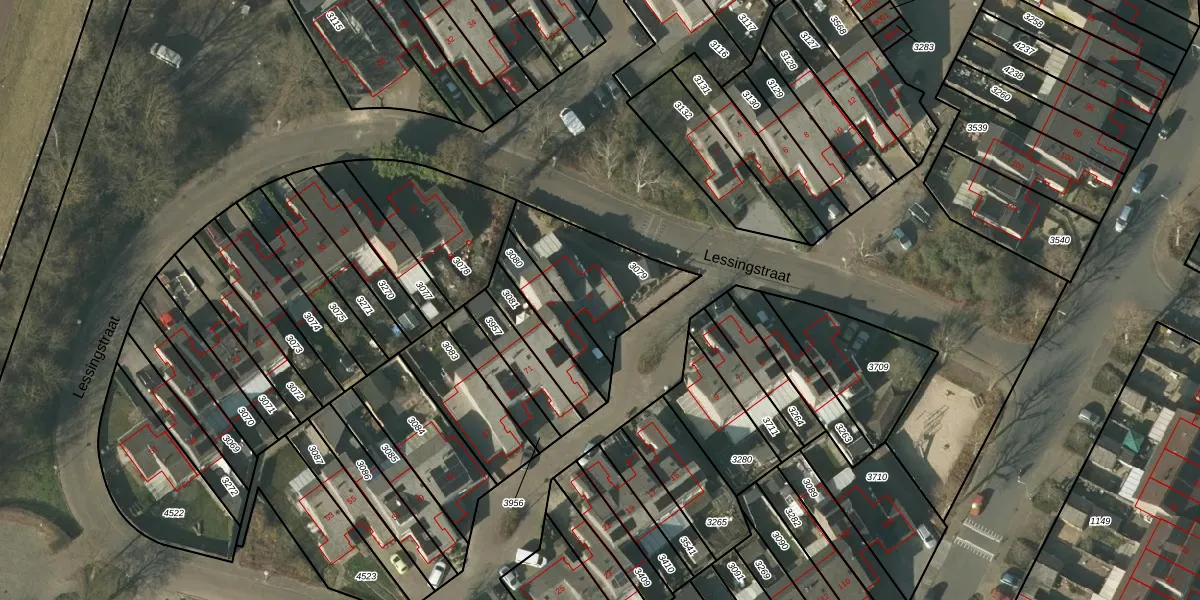 Het perceel waarop Lessingstraat 77 staat heeft een oppervlakte van 345 m². Dit is een groot perceel. De perceeloppervlakte wordt geregistreerd door het Kadaster. Gedetailleerde informatie over de maten van dit perceel kunt u vinden in het rapport Kadastrale kaart met maatvoering van Lessingstraat 77.