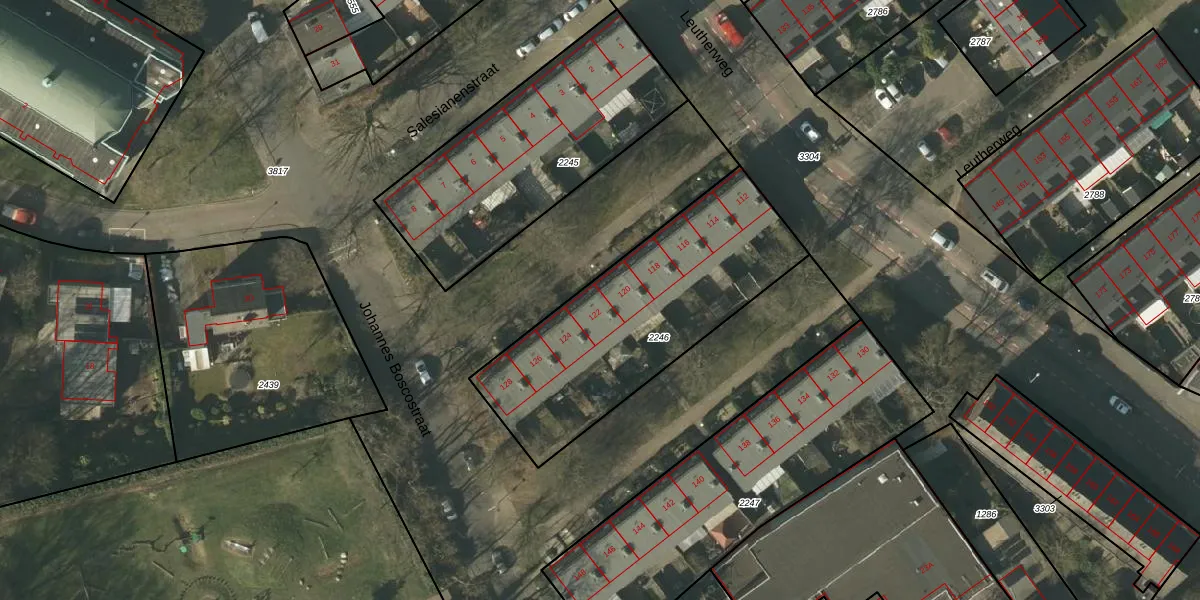 Leutherweg 122 is gelegen op kadastraal perceel VLO00F2246. Deze kadastrale aanduiding is uniek en wordt gebruikt door het Kadaster om eigendomsrechten en andere zakelijke rechten vast te leggen. Het perceel maakt onderdeel uit van de kadastrale gemeente Venlo.