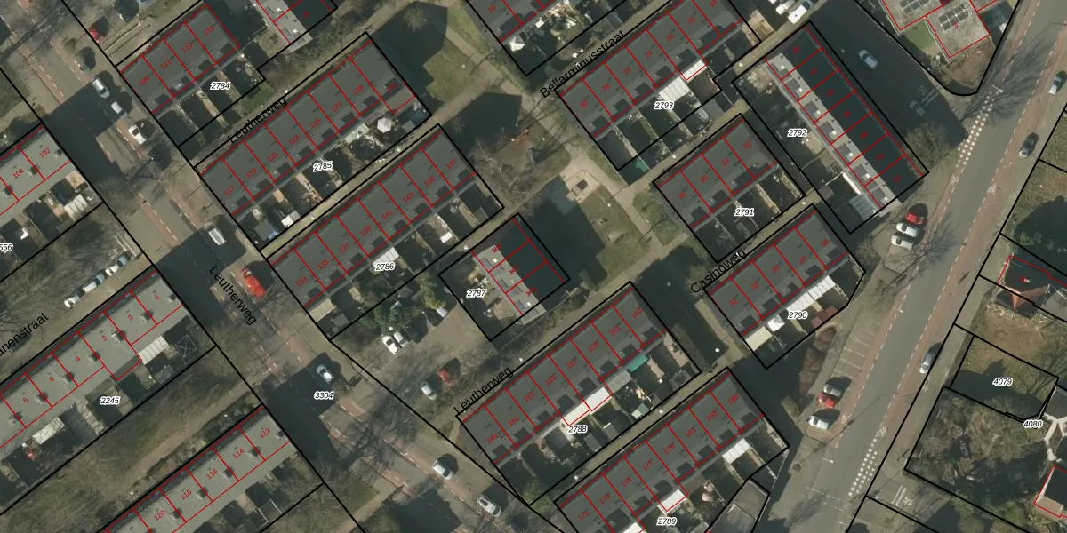 Leutherweg 167 is gelegen op kadastraal perceel VLO00F2787. Deze kadastrale aanduiding is uniek en wordt gebruikt door het Kadaster om eigendomsrechten en andere zakelijke rechten vast te leggen. Het perceel maakt onderdeel uit van de kadastrale gemeente Venlo.