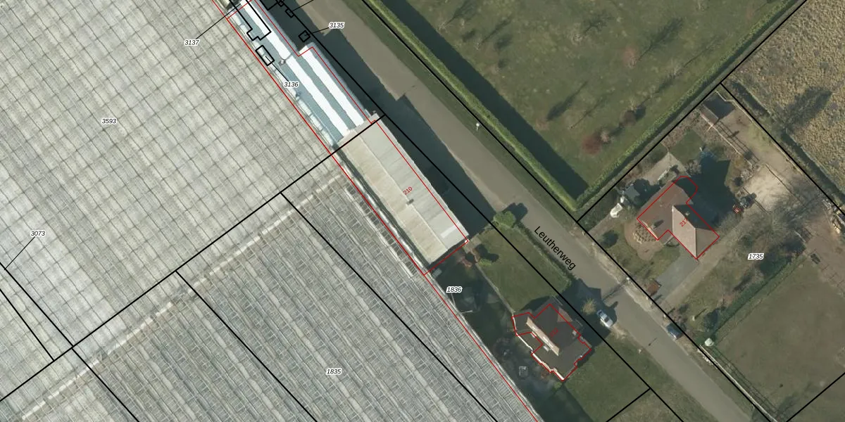 Leutherweg 210 is gelegen op kadastraal perceel VLO00F1836. Deze kadastrale aanduiding is uniek en wordt gebruikt door het Kadaster om eigendomsrechten en andere zakelijke rechten vast te leggen. Het perceel maakt onderdeel uit van de kadastrale gemeente Venlo.